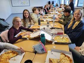 Pizza in der Schule?! "TOP 1" stand am Ende der Auswertung. Den ersten Platz bei der im September gestarteten Bike2School-Challenge hat unsere Klasse 7c belegt. Zur Belohnung gab es jetzt statt Deutsch, Mathe oder Erdkunde ein gemeinsames Pizzaessen mit den Klassenlehrerinnen.
