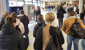 Im Hörsaal konnten Interessierte Reden des Philosophiekurses des Jahrgangs 13 rund um Fragen nach der Demokratie anhören.