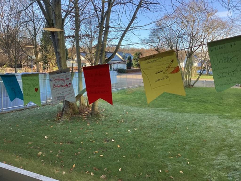 Tag der Kinderrechte: WN-Kurs in Jg. 5 gestaltet Wimpelkette